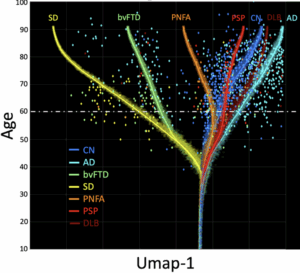 L’idée est de voir comment le cerveau change normalement avec l’âge, et comment il change différemment en cas de maladie neurodégénérative (comme Alzheimer, Parkinson ou d’autres formes de démence).